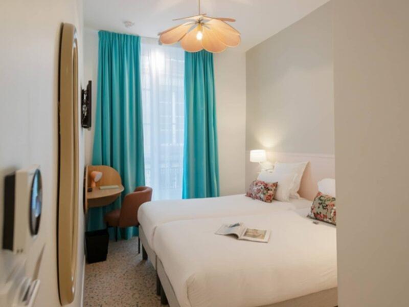 With its 23 rooms, this house-like hotel located in the 6th arrondissement, is a unique place of its kind, a place more welcoming than intimidating where we take seriously cool life. Here, no fuss, no total overrated look, but a state spirit, color, and designer objects to make life happy! And then, last but not the least: high quality bedding, reversible air conditioning, and fiber everywhere. Pretty cocoons with design solutions that mix colors and decoration with great bedding, reversible air conditioning and fiber. Spaces designed to take it easy, daydreaming, sleeping until midnight. And the night owls and the party people who cannot consider leaving their room before early afternoon are reassured: a late check-out is offered to them!
