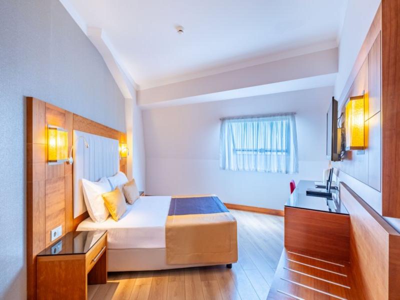 Un hotel familiar ubicado en la hermosa zona de Beldibi, a aproximadamente 10 minutos en coche del complejo de Kemer y rodeado por los Montes Tauro y el Mar Mediterráneo. Con un estilo y decoración elegantes, los huéspedes pueden disfrutar de una variedad de servicios y actividades para todas las edades. Puedes tomar el sol junto a la elegante piscina al aire libre o en la playa privada de guijarros, donde un gran embarcadero te ofrece una alternativa encantadora para disfrutar del sol mediterráneo. Las habitaciones son modernas y espaciosas, y ofrecen un lugar cómodo para relajarse al final del día antes de disfrutar de una cena en uno de los restaurantes del hotel o de una bebida refrescante en el bar del jardín. El transporte público pasa cerca de la entrada del hotel, lo que te permite acceder fácilmente a las numerosas atracciones de la zona, incluida la ciudad de Antalya, a 32 km.